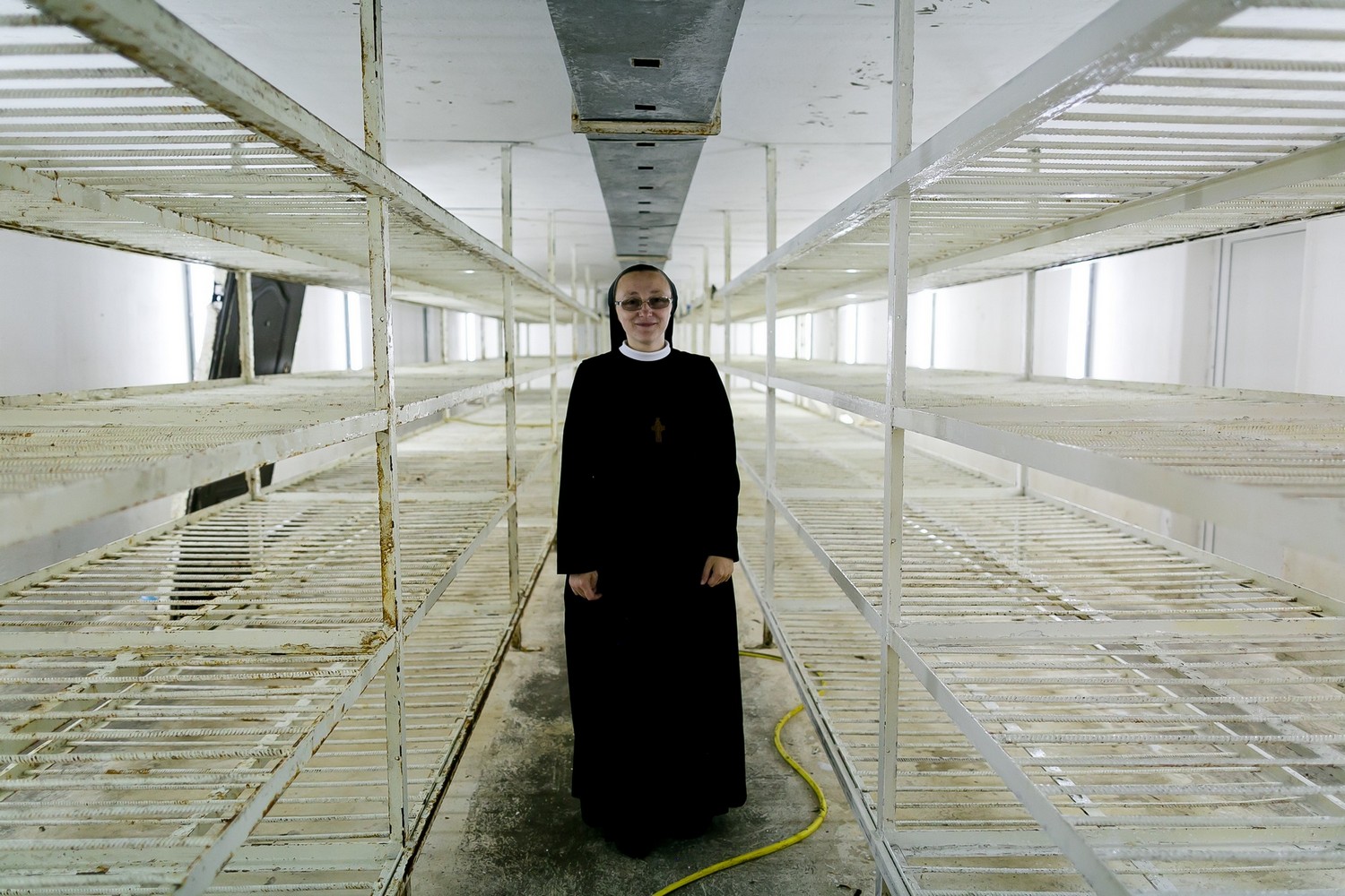 Сестра Вінкентія стоїть серед просторої камери. Довкола — десятки полиць, на яких ростуть гриби. Сюди в сезон завозять десять тонн торфу та компосту, в якому вже є міцелій гриба. Щодвамісяці сестри збирають урожай. Камера — стерильна, і до неї не можна заходити без відповідного взуття чи маски. Якщо нехтувати правилами, то всередину може потрапити інфекція і це може зіпсувати збір.