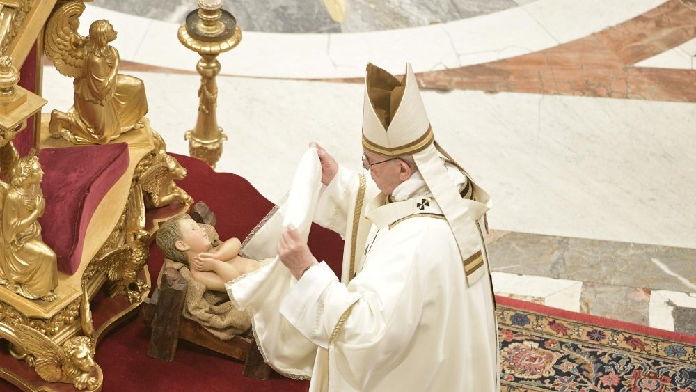 Як пастухи, що першими прибігли до печери, ми здивовані знаком, який нам дав Бог: «Дитя сповите, покладене в яслах» (Лк 2,12). Мовчки стаємо навколішки та поклоняємося.