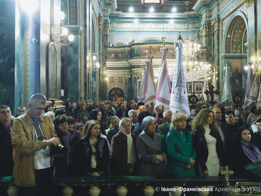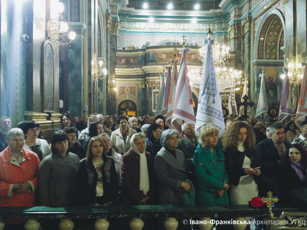 Рано-вранці франківці чисельно зібрались в Архікатедральному і Митрополичому Соборі Воскресіння Христового на Пасхальну відправу. Очолив богослужіння Архієпископ і Митрополит Івано-Франківськи Владика Володимир Війтишин.