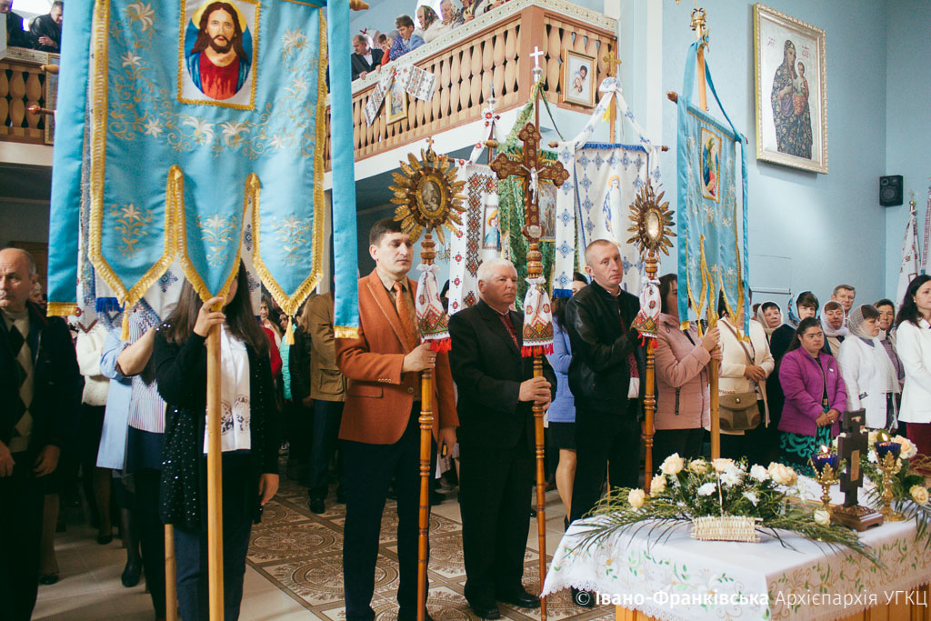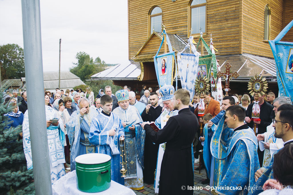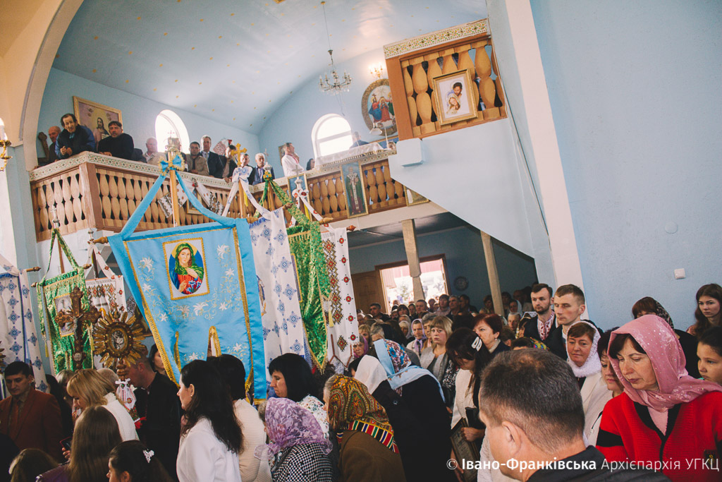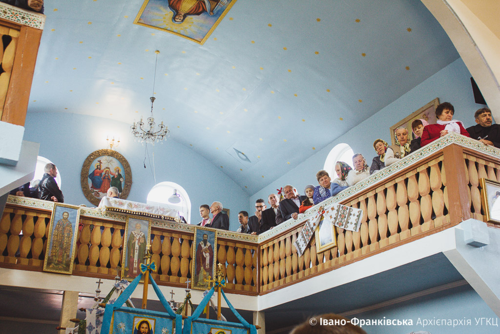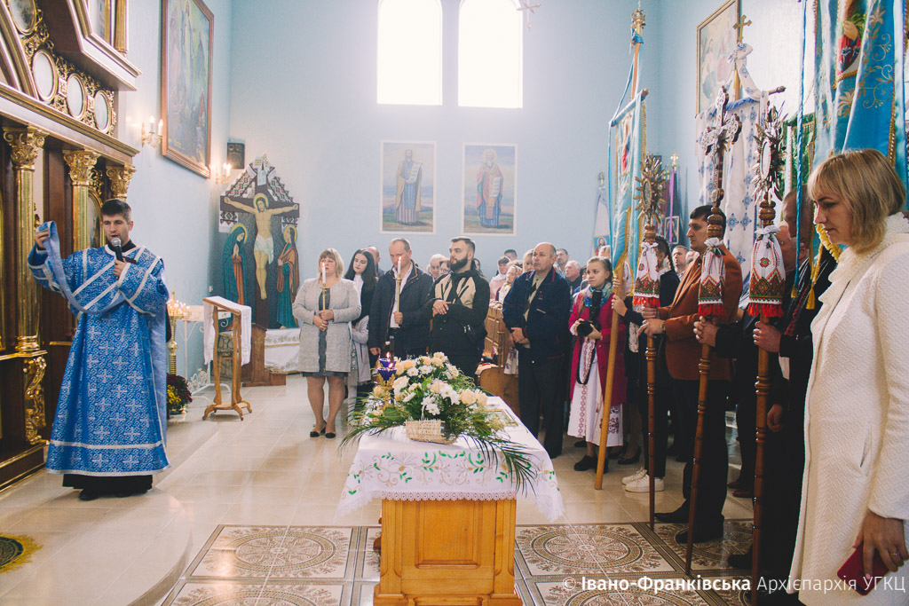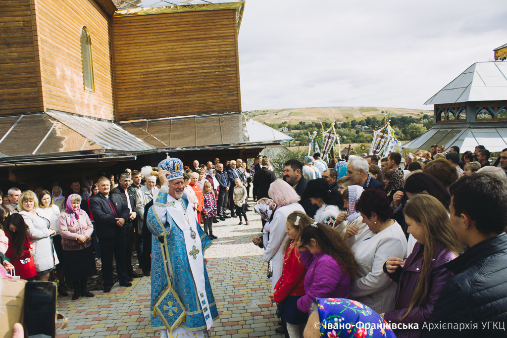 Зібране духовенство, на чолі з отцем-протопресвітером Миколаєм Цимбалістим, діти, молодь та віряни радо зустрічали Архієрея на подвір’ї святині, запрошуючи очолити святочні богослужіння. Увійшовши до храму, Митрополит Володимир здійснив Чин освячення нового іконостасу, над яким громада трудилася не покладаючи рук останні два роки.