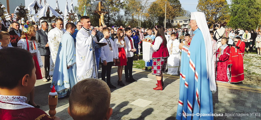 Свого Архієрея діти та молодь парафії, разом із духовенством та численними вірними, радо вітали на церковному подвір’ї. Протопресвітер Голинського деканату о. Анатолій Козак запросив Владику очолити урочисті богослужіння.