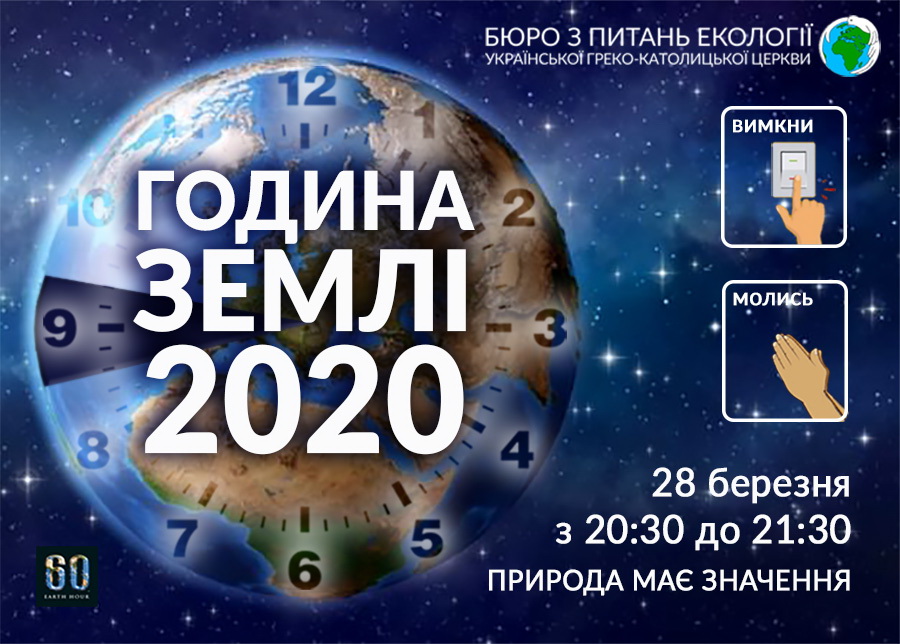 Бюро з питань екології Української Греко-Католицької Церкви вкотре взяло участь та молитовно підтримало Годину Землі. Екобюро закликало не обмежуватись на символічне вимкнення електричного освітлення, але використати цю годину для молитовної застанови над своїм життям у спільному Божому домі, адже цьогоріч, як ніколи, людство збагнуло наскільки великою цінністю є Божий дар – життя.