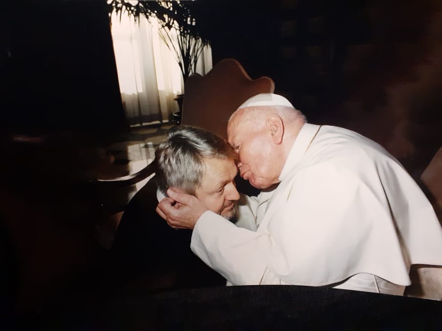 Перед першою зустріччю зі Святішим Отцем я стояв у коридорі й очікував на Його Святість. Коли він вийшов із каплиці, де молився, і наблизився, опираючись на палицю, від враження величі його особи та моєї малозначимості, я опустився на коліна й почав наближатись до нього. Збоку, мабуть, виглядав, як ті, що прямують до плащаниці. Папа посміхнувся, підняв мене, а я поцілував його руку. А тоді я попросив: «Святіший Отче, дайте ще й другу, бо дві особи просили мене, щоб я поцілував Вашу руку за них».