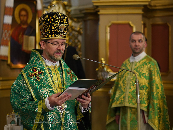 «Ми довго його шукали, – поділився Предстоятель, – у лоні нашого Синоду, у лоні різних спільнот. Ми довго шукали нового єпископа для українців в Австралії. Ми дякуємо, що силою і діянням Святого Духа сьогодні, у свято П’ятдесятниці, Господь його помазав. Цього дня виявляється, ким є Греко-Католицька Церква. Та Церква, яка пішла зі своїм народом аж до країв землі. Але, розпорошена по всьому світі, вона є єдиною, об’єднаною».