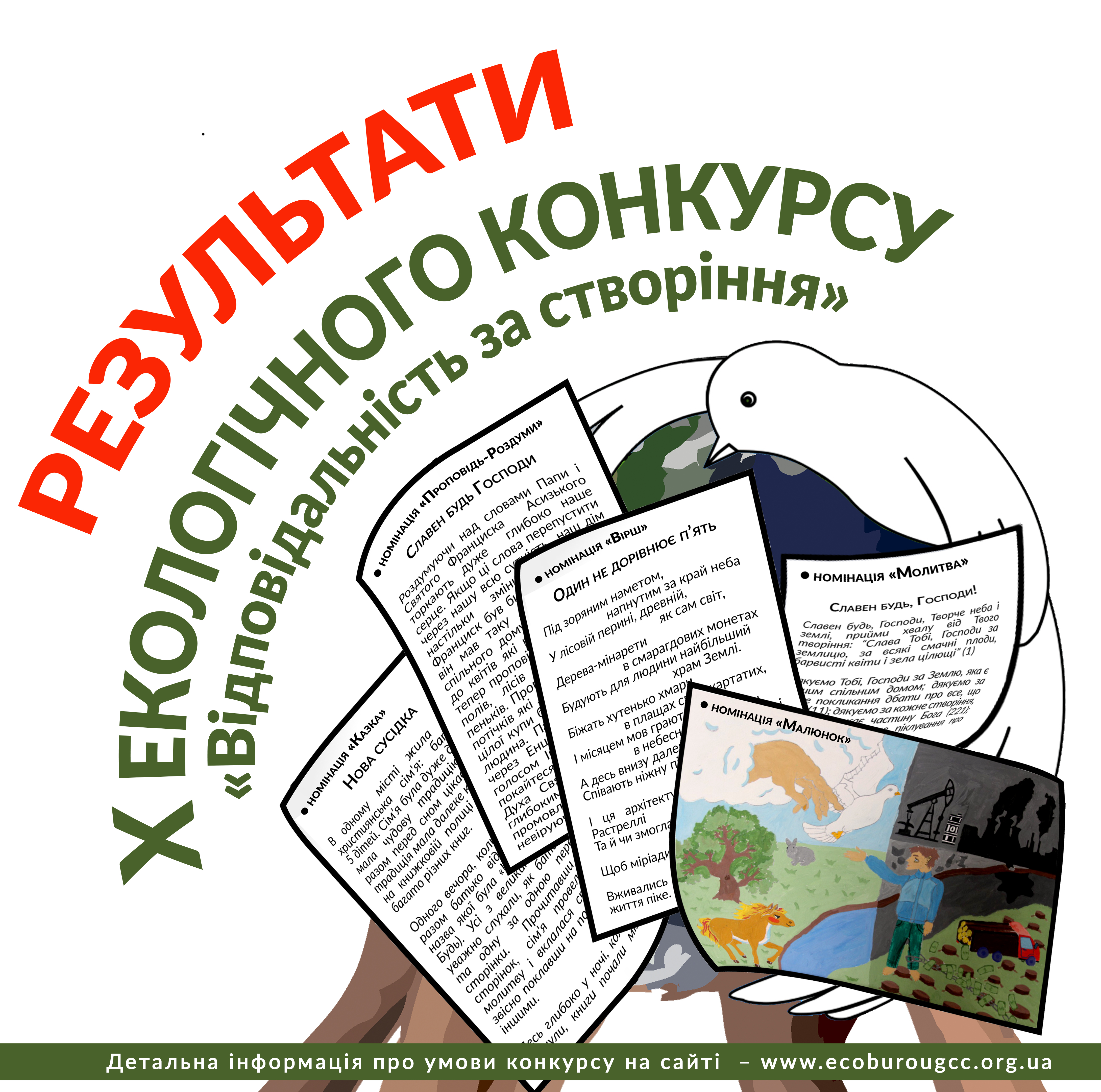 Х ювілейний конкурс «Відповідальність за створіння» відбувся в році «Laudato Si», проголошеному Святійшим Отцем Франциском з метою воплочення у життя вчення однойменної енцикліки про відповідальність кожного за наш спільний, створений Богом – дім природи. Конкурс відбувся у період досить непростий для всього людства. Пандемія коронавірусу внесла корективи в усе наше життя. Ми стали більш обмеженими в спілкуванні, в пересуванні, в наших звичках, але, мабуть, також і більш стриманими, щирими і відповідальними.