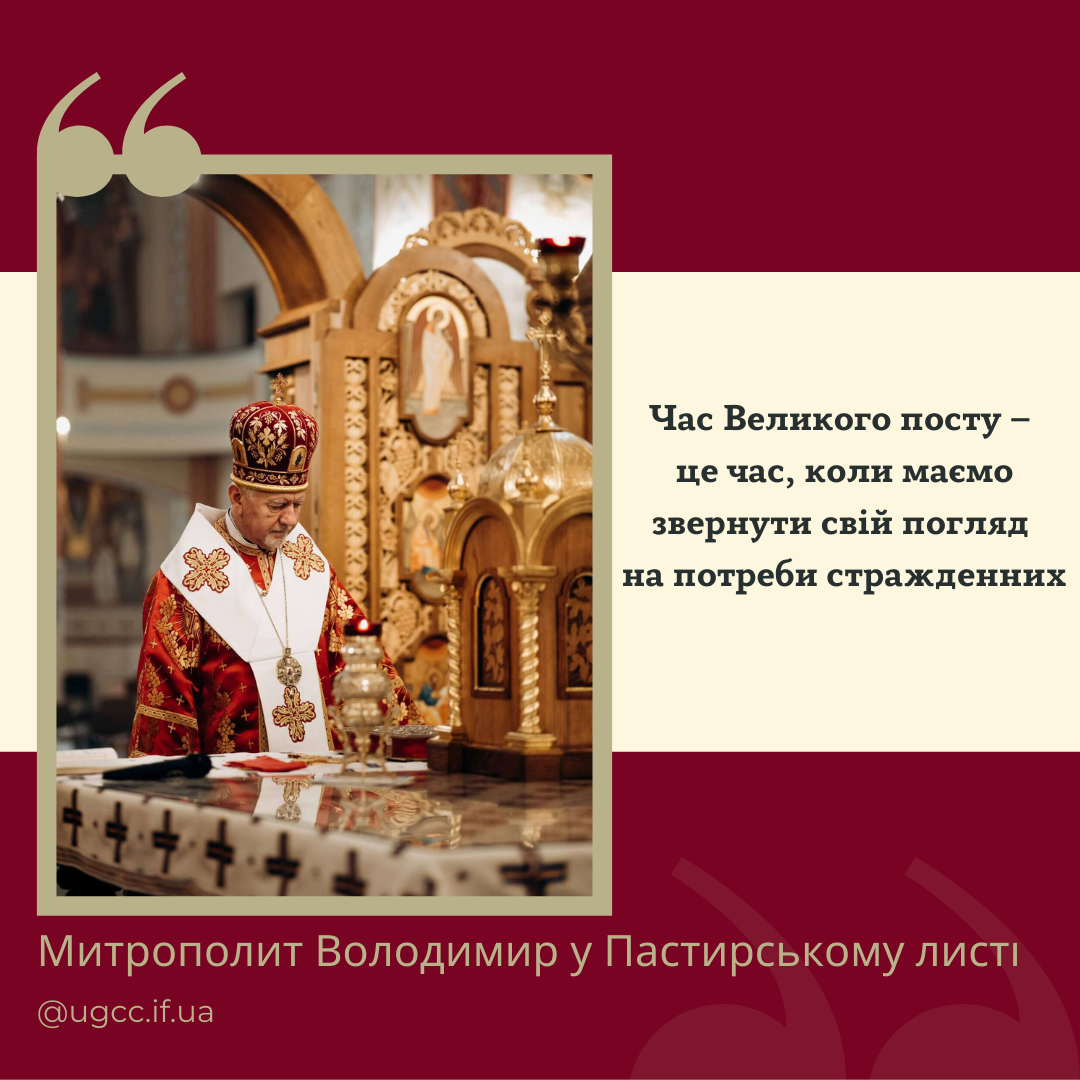Такими словами звернувся Архієпископ і Митрополит Івано-Франківський Владика Володимир Війтишин у своєму Пастирському листі на Великий Піст 2022 р. Б. до вірних та духовенства нашої Митрополії.
