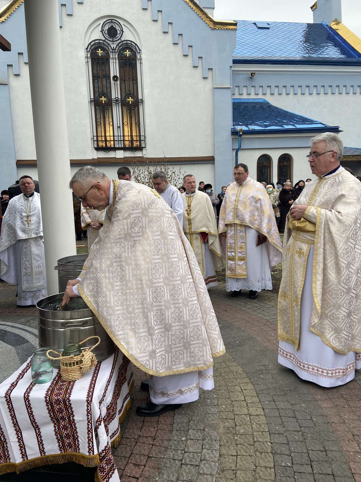 Після численних слів привітань та побажань, що лунали в адресу служителів храму, доброчинців, парафіян та усіх причетних, на подвір’ї церкви відбулося святкове водосвяття, та окроплення свяченою водою усіх мирян.