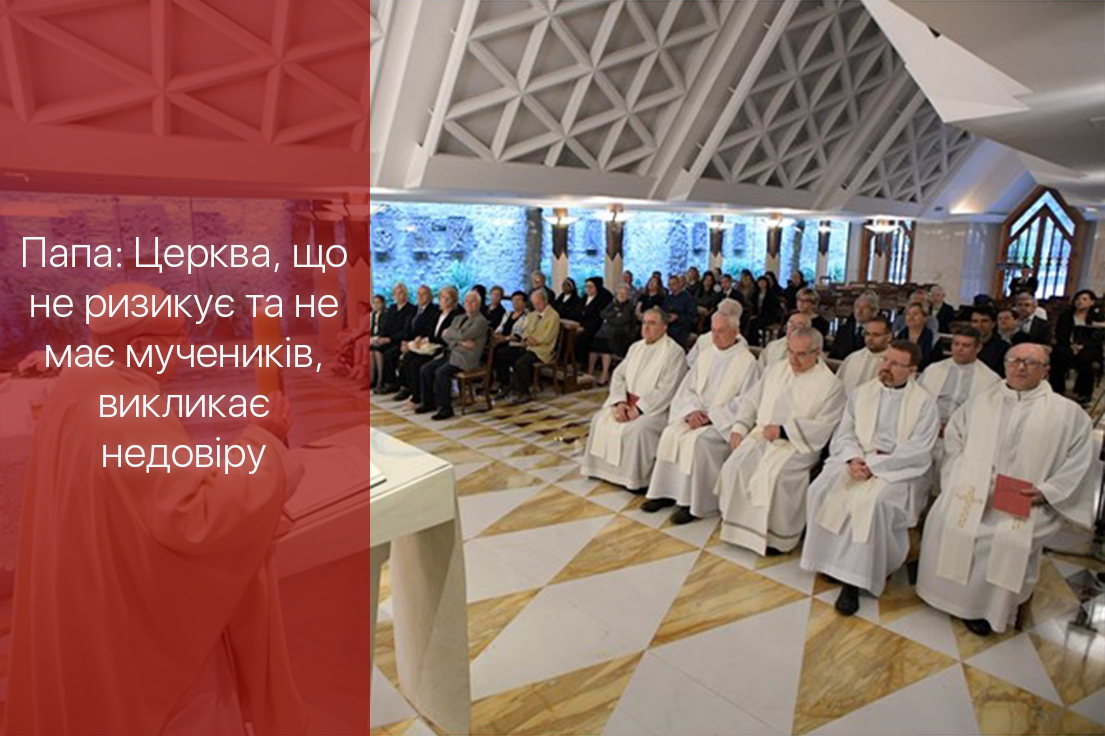 «Церква без мучеників викликає недовіру, Церква, яка не ризикує, не викликає довір’я, Церква, яка боїться звіщати Ісуса Христа та проганяти демонів, ідолів, іншого пана, яким є гроші, не є Ісусовою Церквою», – підсумував Папа, побажавши: «Нехай же нам не забракне цього навернення від літеплого способу життя до радісного звіщення того, що Ісус є Господом».
