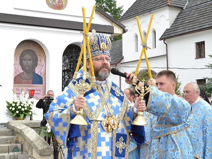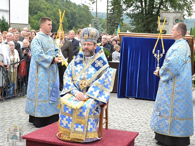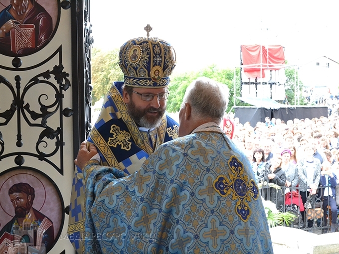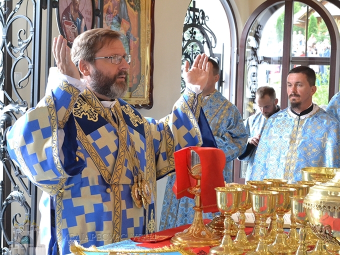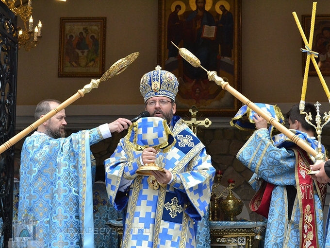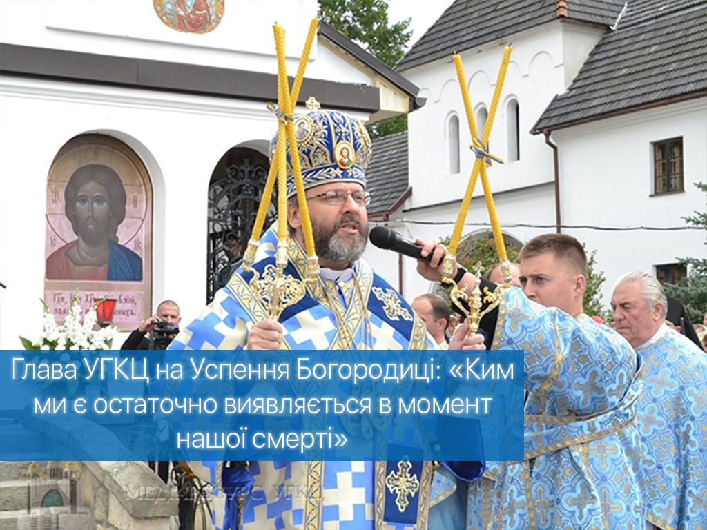 «Сьогодні, зійшовшись на молитву, – сказав Блаженніший Святослав, – ми подібні до тих апостолів, яких Дух Святий зібрав із цілого світу, аби вони були свідками Успення Пречистої Діви Марії. Бо в момент її смерті Господь Бог хотів об’явити, ким вона є. У момент її Успення ми маємо об’явлення її особи, що ця Марія, Мати нашого Спасителя – істинна Богородиця, пречиста дівиця, яка породила в тілі воплоченого Бога. Вдивляючись у таїнство особи Богородиці, її блаженної кончини, її Успення, її сьогодні урочистого входу до небесного престолу, ми відкриваємо таємницю про нас самих, ким ми є, ким є та людина, яку сотворив Господь Бог…».