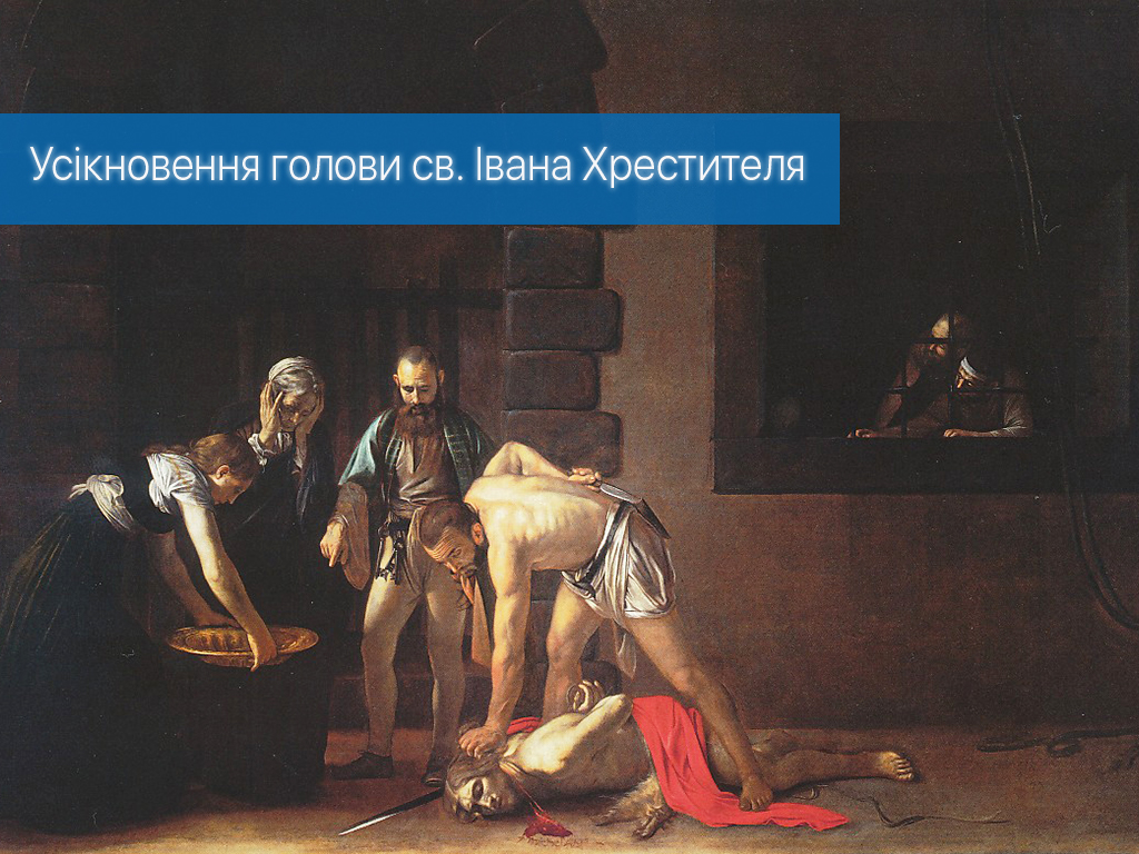 Про мученицьку смерть Івана Предтечі детально розповідається в Євангелії від Марка (6, 14-30). Іван Хреститель осуджував царя Ірода за те, що той жив із дружиною свого рідного брата – Іродіадою. Відтак жінка захотіла помститися Іванові і таким чином приховати свій ганебний вчинок. Одного разу, коли Ірод святкував свій день народження, для нього танцювала танець донька Іродіади – Соломея. Цей танець дуже сподобався Іродові і він пообіцяв дівчині, що виконає будь-яке її бажання. Дівчина, за намовою матері, попросила відсікти Іванові Хрестителю голову. Ірод не відмовив, і голова Івана була відтята.