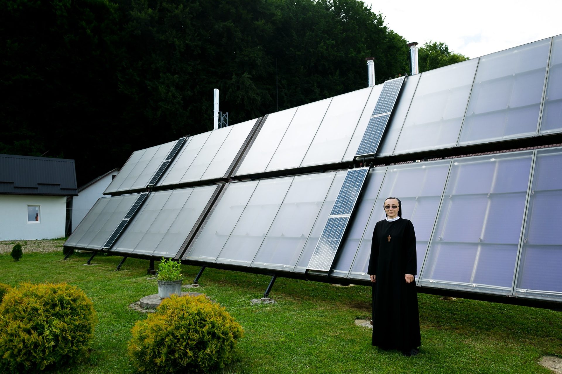 Сестра Вінкентія стоїть серед просторої камери. Довкола — десятки полиць, на яких ростуть гриби. Сюди в сезон завозять десять тонн торфу та компосту, в якому вже є міцелій гриба. Щодвамісяці сестри збирають урожай. Камера — стерильна, і до неї не можна заходити без відповідного взуття чи маски. Якщо нехтувати правилами, то всередину може потрапити інфекція і це може зіпсувати збір.