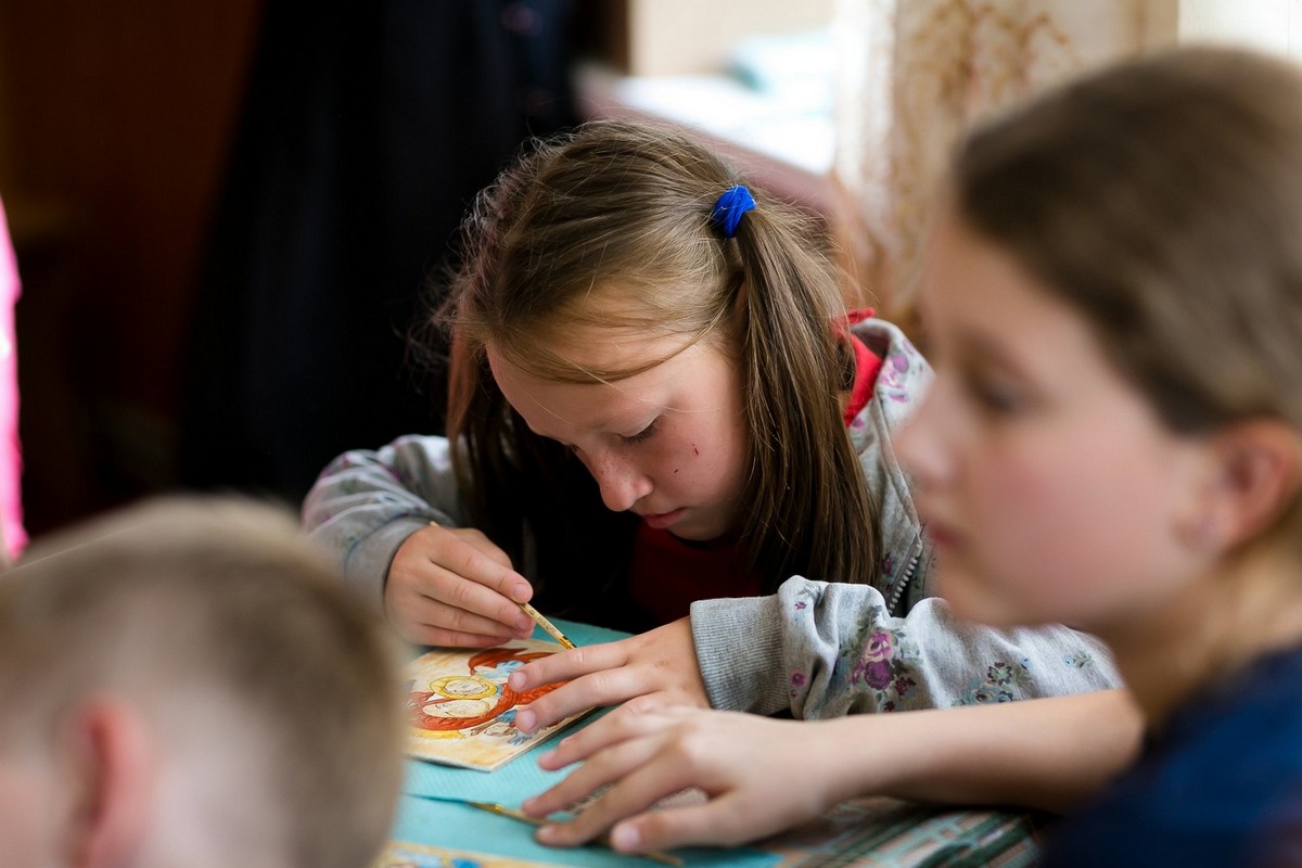 — Я колись брала участь у таборі, а зараз мені просто подобається тут бувати, — каже 14-річна Наталя, — тому я радо приїжджаю сюди зі Львова. Загалом вчусь іконопису, а тут допомагаю діткам. Наймолодшій нашій учасниці, Соломії, шість років. Я контури підводжу, — сміється.