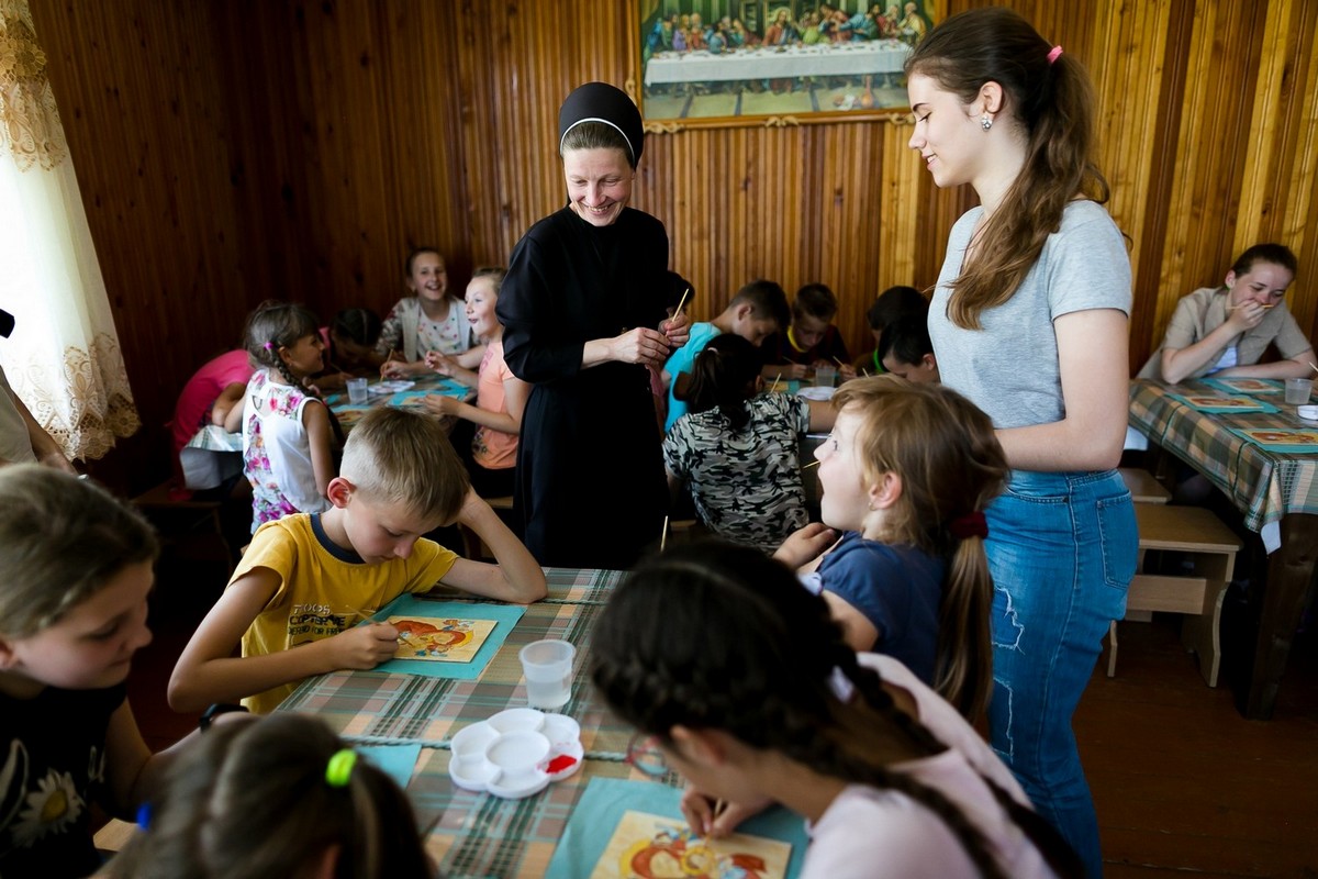 14-річна Наталя, яка прибігла на кухню по нього, сама колись брала участь у літніх таборах, що організовують сестри, зараз допомагає їм із молодшими дітками. Зараз їх в монастирі — 29. Двотижневий табір організовують для сиріт, дітей з багатодітних сімей та малозабезпечених. Часом батьки навіть з сусідніх сіл не мають можливості повезти кудись своїх дітей на літо, тому із корисним і цікавим проведенням часу допомагають сестри.