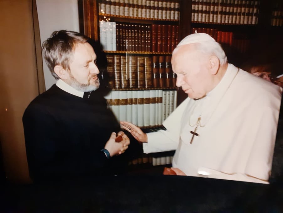 Я хотіла приготувати матеріал для газети «Нова Зоря» про Івана Павла ІІ і зустрітись з людиною, яка спілкувалась з Папою Римським безпосередньо особисто впродовж не одного дня, а багатьох років, причому, щоб це був українець. Ще вчора цей задум виглядав лише мрією. Та, на щастя, головний редактор газети «Нова Зоря» о. Іван Стефурак відповів мені з посмішкою, що насправді така людина існує, і вже за декілька хвилин лунав дзвінок до Риму…