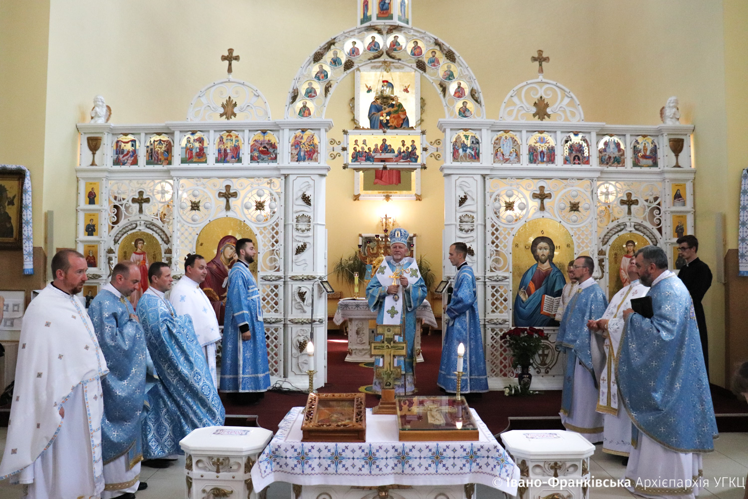 Освятивши престіл, Митрополит Володимир розпочав Архієрейську Божественну Літургію, на якій Владиці співслужили численні отці Чину Найсвятішого Ізбавителя та запрошене духовенство. Звертаючись до присутніх в часі проповіді, Владика роздумував над темою покликання до святості кожного християнина. Для цього, за його словами, ми маємо гарний приклад в особах наших українських святих та блаженних.