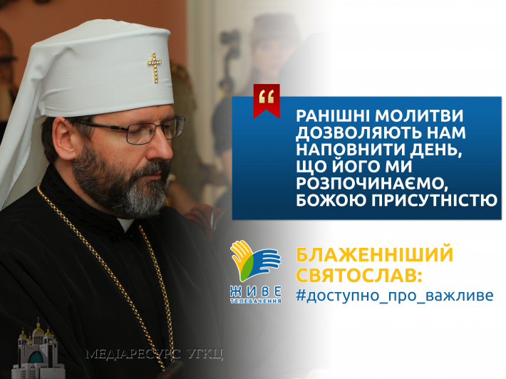 Кожна днина має два особливих моменти, у яких ми повинні обов’язково згадати про Бога. Це початок і завершення кожного нашого дня. Однак молитовний день має тривати не лише якісь лічені хвилини, короткий період, але всю днину. Тому коли ми розпочинаємо день з молитви, то демонструємо цим, що хочемо впродовж усього дня розмовляти з Богом. На цьому наголосив Глава УГКЦ в новому випуску відеопроєкту «Блаженніший Святослав: #доступно_про_важливе».