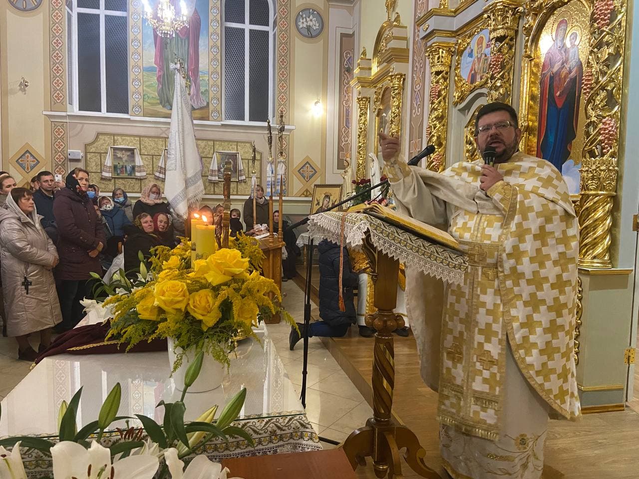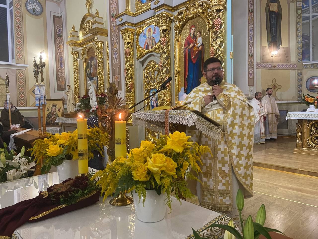 «Сьогодні маємо чудову нагоду бути тут, бути поруч одне з одним, творячи справді Церковну спільноту. Маємо дякувати Богу за цей дар спільності та Божої присутності. Щоби тут, у цьому святому місці, покликані нашим блаженним Симеоном, посповідатися, прийняти Євхаристію та почути щось корисне для своєї душі», – сказав на початку проповідник.