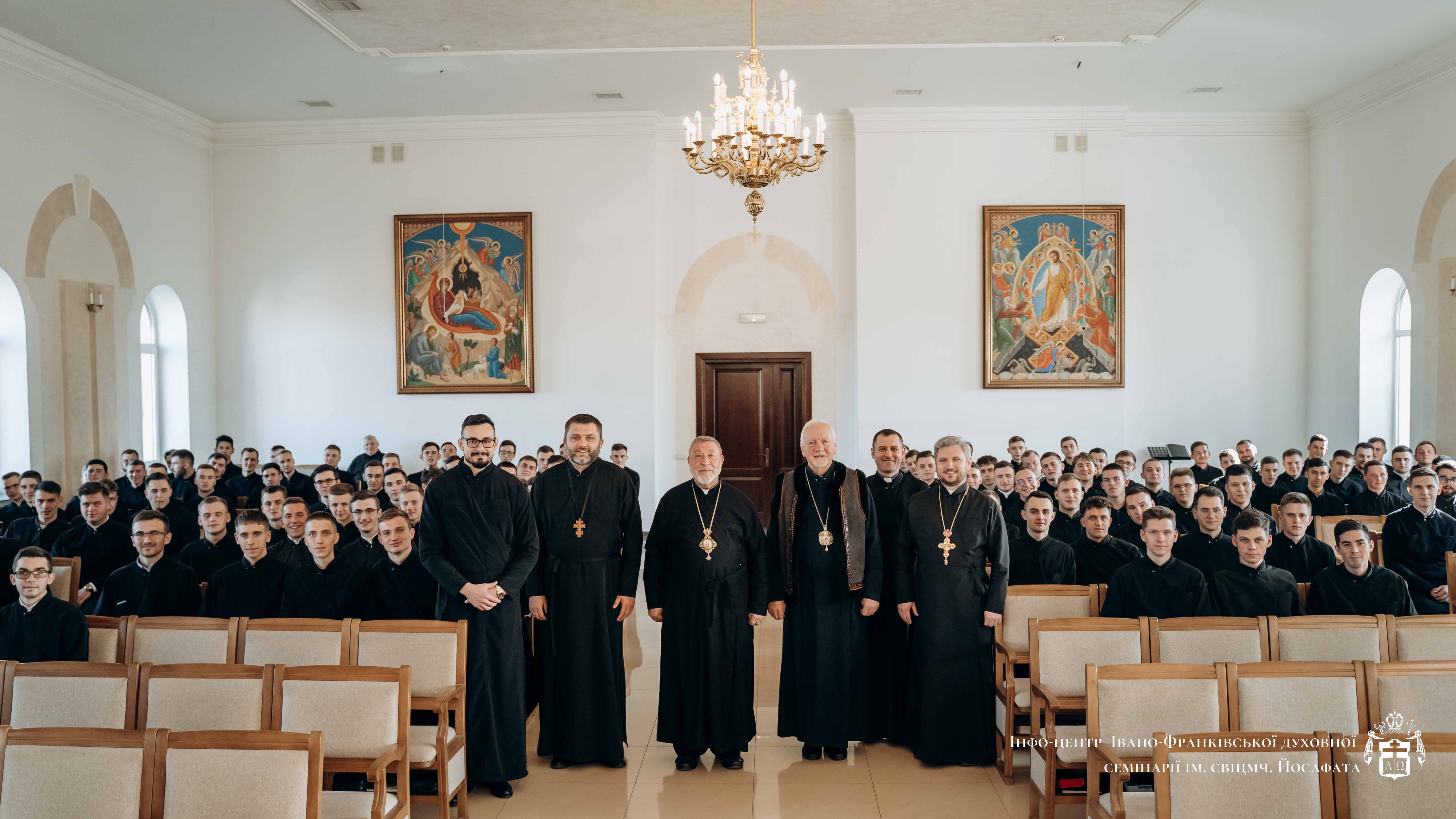 Сьогодні, 7 жовтня, до Івано-Франківської духовної семінарії завітали гості зі Східної України - владика Степан Меньок, екзарх Донецький, а також о. Іван Талайло – адміністратор парафії св. Миколая Чудотворця міста Кривий Ріг. Метою зустрічі було уведення семінаристів в особливості душпастирського служіння на східних теренах України.