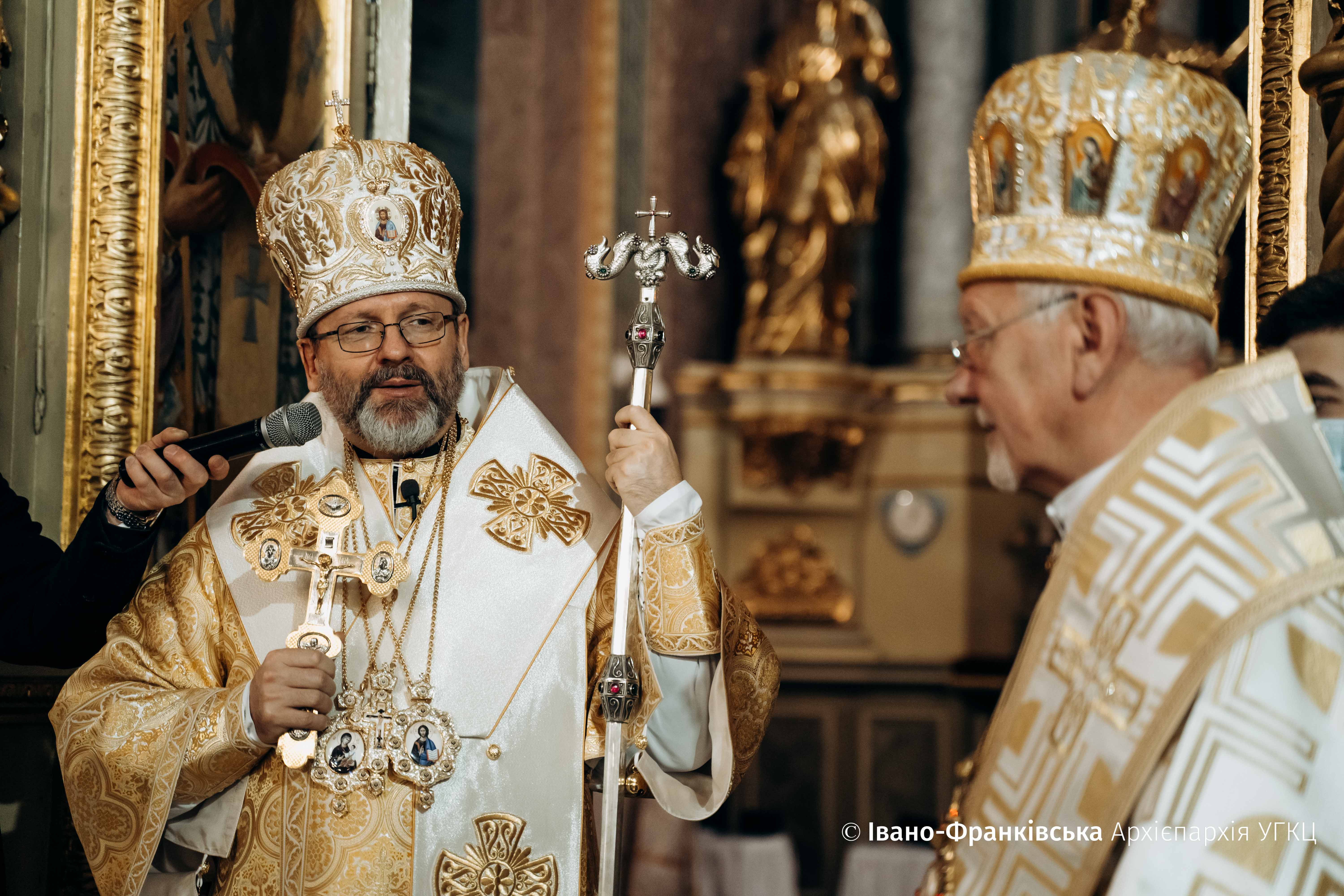 По завершенні Божественної Літургії Блаженніший Святослав звернувся з вітальним словом до усіх присутніх. Патріарх наголосив на тому, що Владика Володимир Війтишин – перший в історії Івано-Франківський Митрополит, на плечі якого лягає велике історичне завдання.
