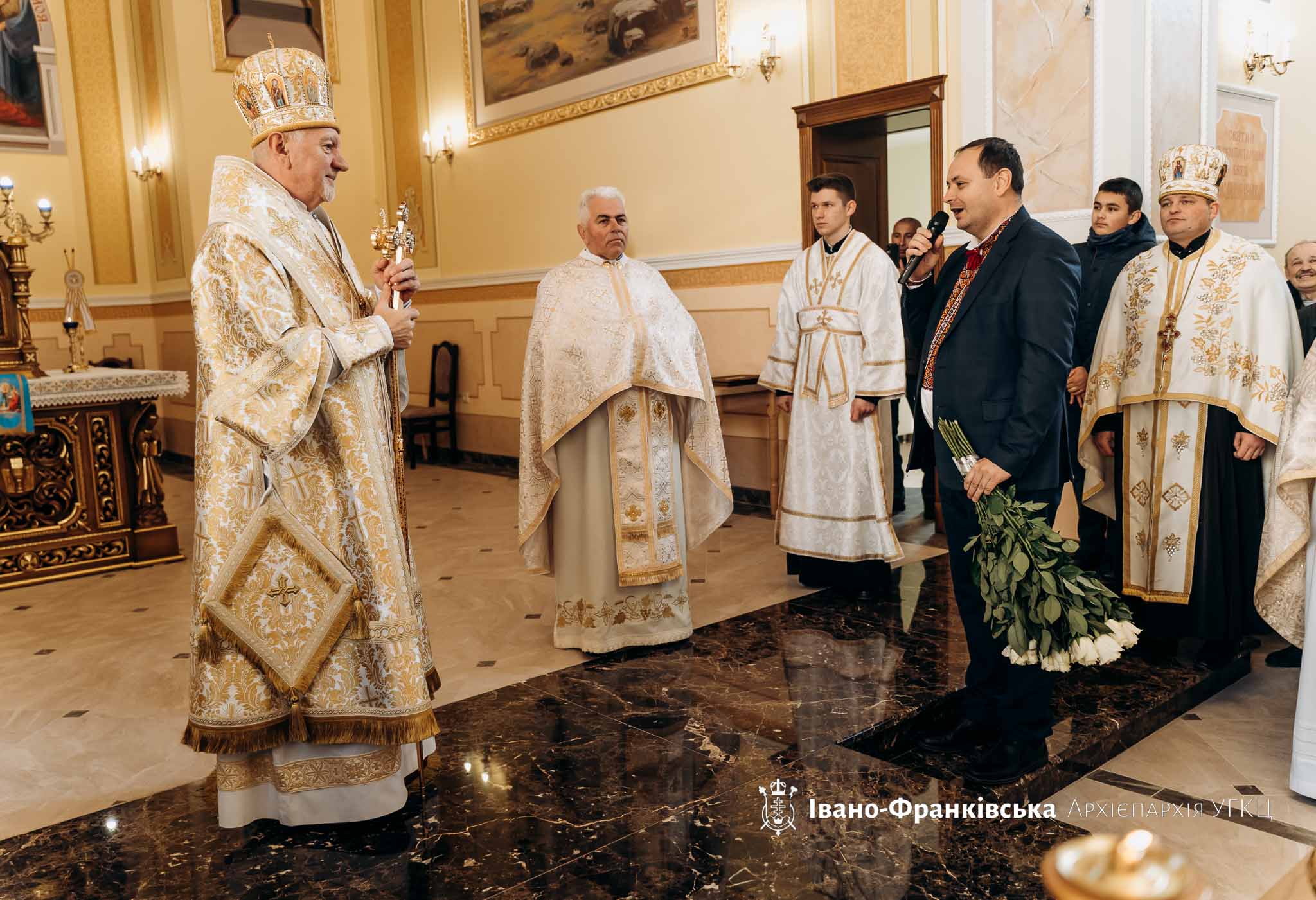 Після завершення богослужіння Владика Володимир привітав вірних з подією освячення новозбудованого храму, адже уся громада об'єднала свої зусилля для зведення святині, оскільки декілька років тому старий деревʼяний храм згорів.