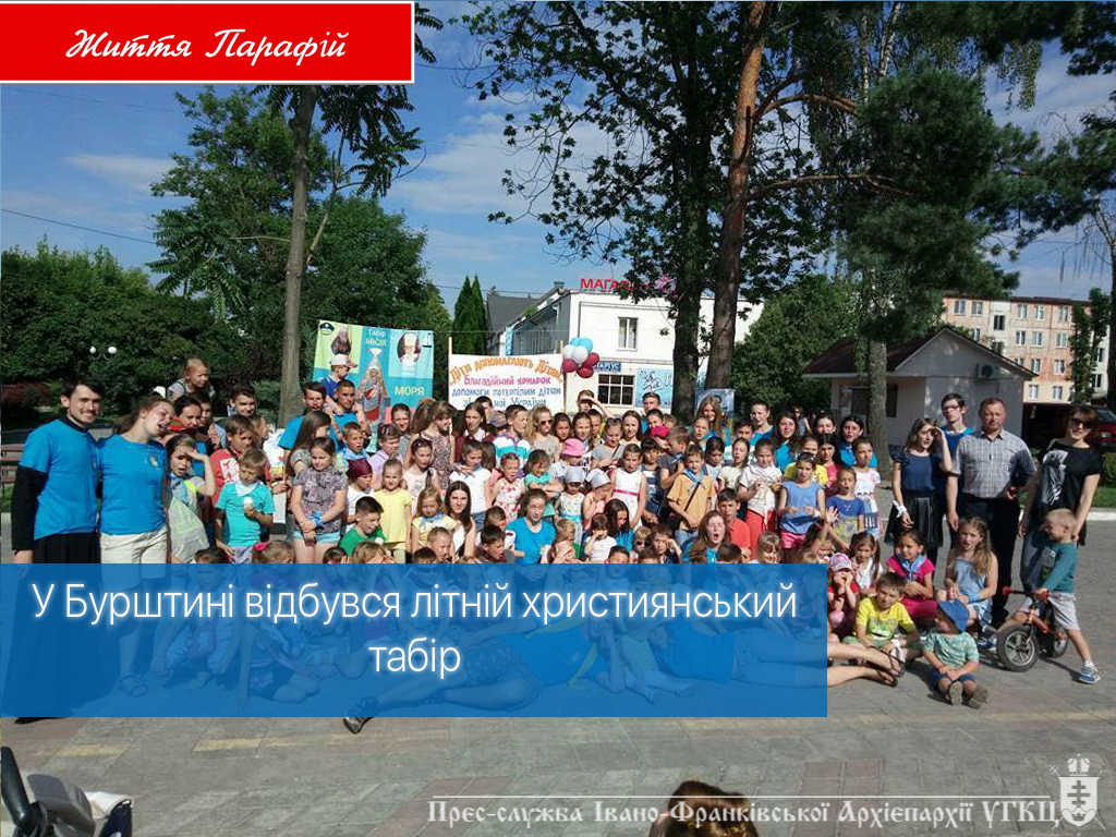 Під цим гаслом в днях з 3 по 6 липня в нашому містечку з благословення о. д-на Дмитра Шмігеля (парафія Свящ. Йосафата УГКЦ), з ініціативи ГО "Молода Просвіта", за підтримки Міської ради м. Бурштин та численних жертводавців відбувся літній християнський табір "Місія-Зірка Моря". Мета табору - виховання підростаючого покоління на традиційних католицьких цінностях, щоб були правдивими місіонерами Ісуса Христа та добрими громадянами власної Батьківщини.